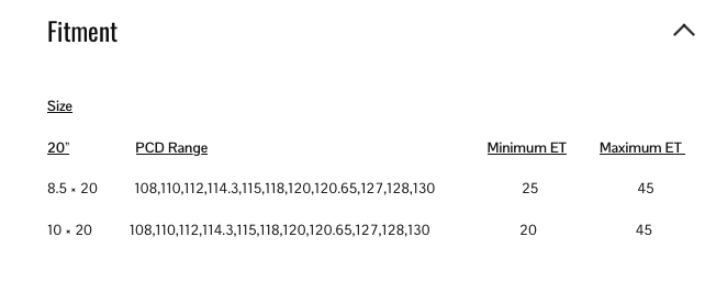 8.5 × 20 108,110,112,114.3,115,118,120,120.65,127,128,130 25 45